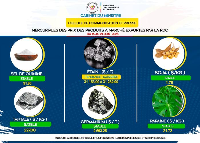 Le ministère du commerce extérieur met à jour les prix des produits agricoles et miniers exportés par la République Démocratique du Congo.