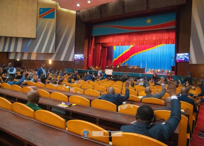 Après l'adoption de l'ordre du jour, la parole a été accordée au Minetat en charge de la justice et garde des sceaux, Guillaume Ngefa, qui a présenté l'économie du projet de loi portant autorisation de la prorogation de l'État de siège sur une partie du territoire national.